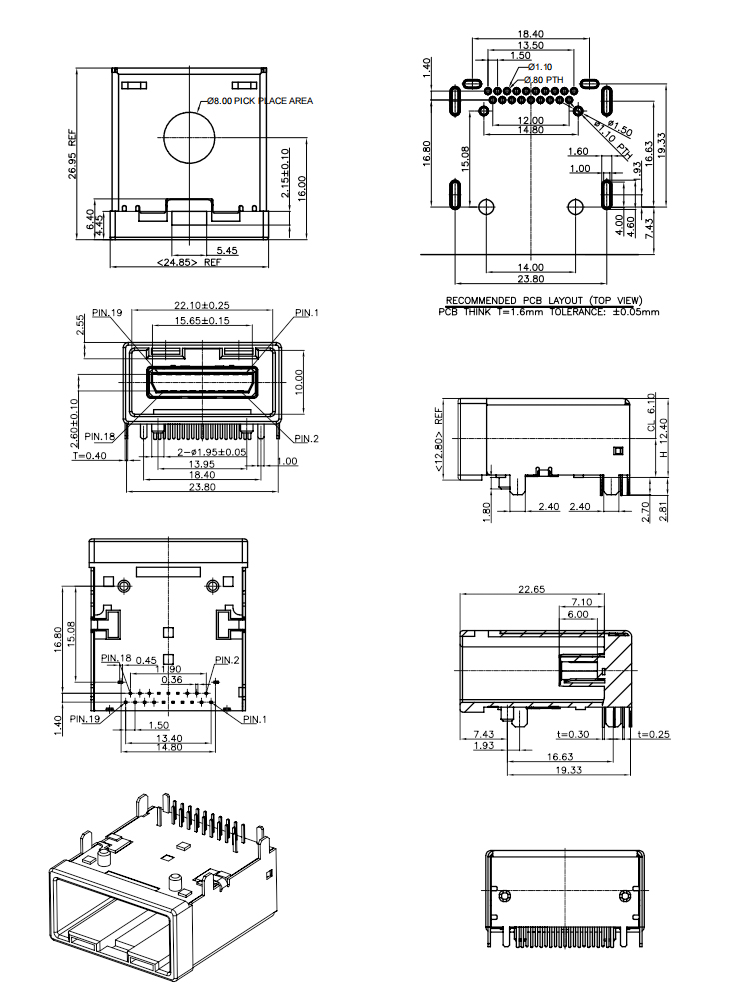 Through Hole 90 Degree High Definition Multimedia Interface 19Pin E Type Female Connector Product Item:DHD01-FXX5T-005 Housing:High Temperature Plastic UL94V-O Contact:Copper Alloy Current Rating:0.5A Dielectric Withstanding Voltage:500V AC/rms Dip Type High Definition Multimedia Interface 19Pin E Type Female Connector Inquiry Send Email Datasheet