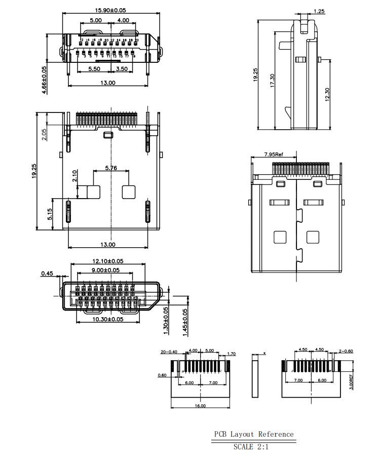 Through Hole DisplayPort DP 20P Male Connector for 1.2MM PCB Product Item:DP09-MXXXX-003-V3-A Housing:LCP+30%G/F,UL 94V-0 Contact:C2680R-H T=0.20±0.01mm Current Rating:1.5A Dielectric Withstanding Voltage:100 V R.M.S. Through Hole DisplayPort DP 20P Male Connector for 12MM PCB With Hook Inquiry Send Email Datasheet