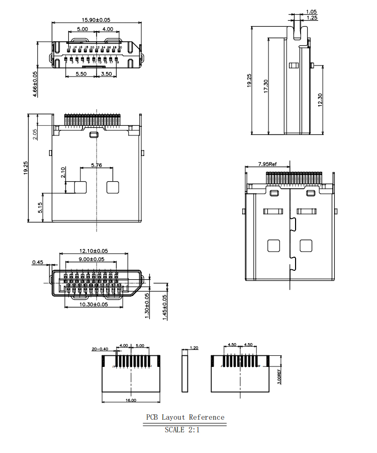 Through Hole Nickel Plated DP 20Pin Male Connector For 1.2MM PCB Product Item:DP09-MXXXX-003-V4-A Housing:LCP+30%G/F,UL 94V-0 Contact:C2680R-H T=0.20±0.01mm Current Rating:1.5A Dielectric Withstanding Voltage:100 V R.M.S. Through Hole Nickel Plated DisplayPort 20Pin Male Connector For 12MM PCB Inquiry Send Email Datasheet