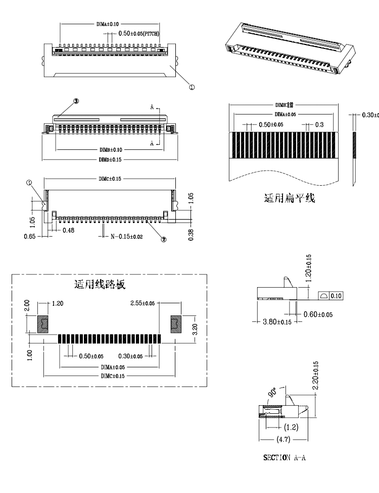 Tin Plating 0.5MM Pitch FPC Connector Lock Horizontal Type H=1.2HH FFC/FPC 4-60P Connector Product Item:FPC05-XXX1X-B006 Housing:LCP UL94V-0 Contact: Phosphor Bronze Current Rating:0.2A Dielectric Withstanding Voltage:100 V R.M.S. Tin Plating 05MM Pitch FPC Connector Lock Horizontal Type FFC/FPC 4-60P Connector Inquiry Send Email Datasheet