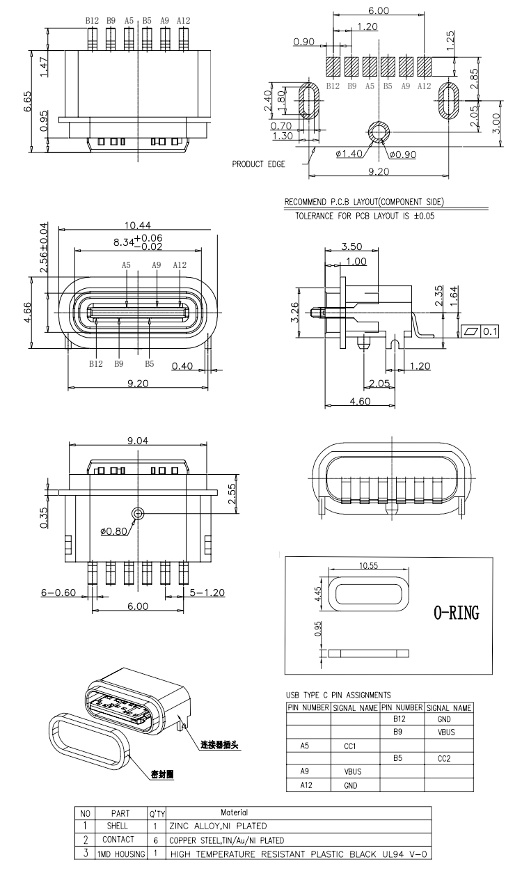Top Mount IPX7 waterproof USB C Female Connector 6P Product Item:U06-CFXX5R-W023 Gender:Female Pin Number: 6Pin Color:Black Insulator:LCP Top Mount IPX8 waterproof USB C Female Connector 6P , L=665mm Inquiry Send Email Datasheet