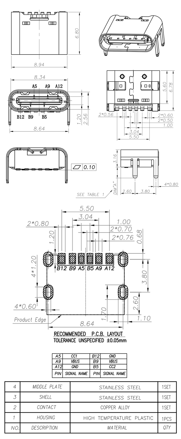 Top Mount USB 3.1 Type C Female 6Pin Socket SMT Connector for PCB Product Item:U06-CF1A5R-AX11 Insulator:High Temperature Plastic Gender:Female Pin:6Pin Color:Black USB 31 Type C Female 6Pin Socket SMT Connector for PCB Inquiry Send Email Datasheet