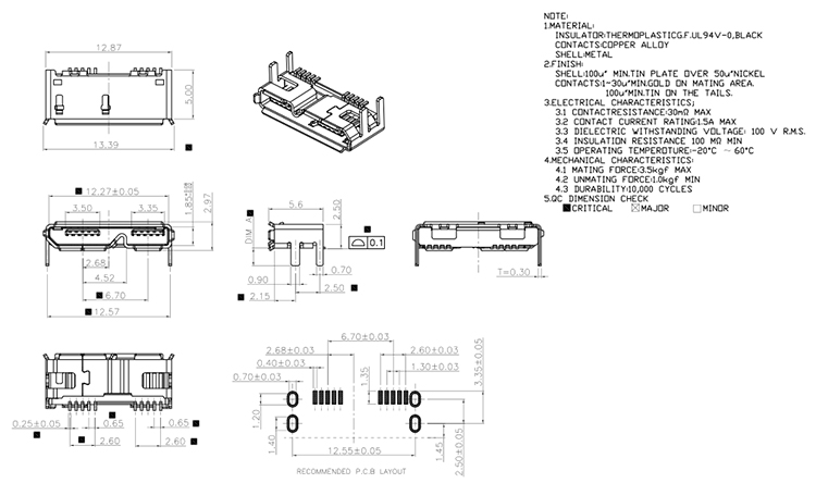 Type B Micro USB 3.0 Female Receptacle PCB Connector 10Pin with Flange Product Item:Micro USB 3.0 connector Insulator:Thermo Plastic Gender:Female Pin:10Pin Color:Blue Type B Micro USB 30 Female Receptacle PCB Connector 10Pin Inquiry Send Email Datasheet
