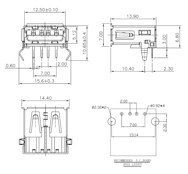 USB 2.0 A Receptacle Socket Connector Product Item:U02-AFXX5T-002-V1 Gender:Female Pin Number:4Pin Color:Black Insulator:PBT USB 20 A Receptacle Socket Connector Through Hole 4Pin Inquiry Send Email Datasheet