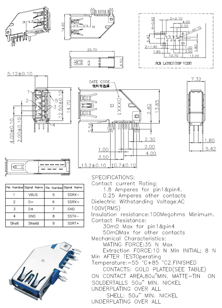 USB 3.0 A Female Connector Product Item:U03-AFXAXX-2001-V1 Gender: Female Pin number: 5Pin Color: Black Insulator: LCP USB 30 A Female Connector Inquiry Send Email Datasheet