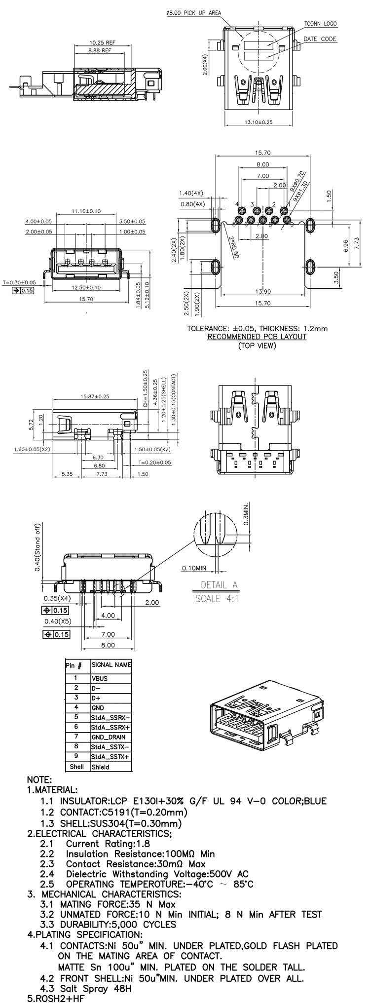 USB 3.0 A Female Socket Connector Mid Mount Product Item:U03-AFXAXX-5013 Gender: Female Pin number: 9Pin Color: Black Insulator: LCP USB 30 A Female Socket Connector Mid Mount Inquiry Send Email Datasheet
