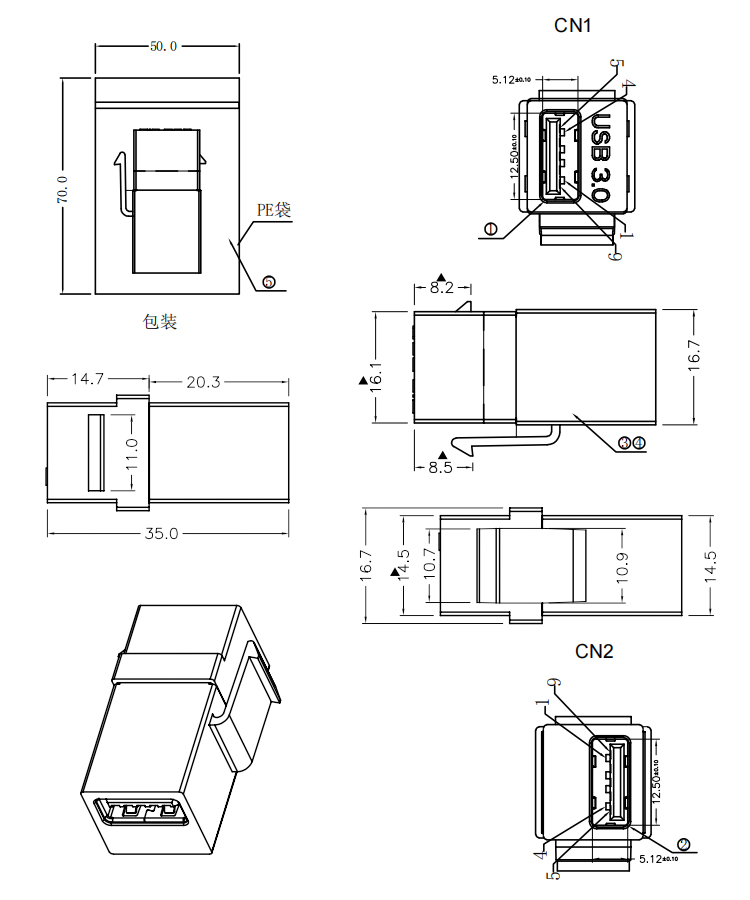 USB 3.0 A Female to USB 3.0 A Female Extension Keystone Jack Adapter Product Item:AD30AF30AF-003 Outer Molding:ABS,white Inner Mold:PCB Board T=1.6MM Connector1:USB 3.0 A Female Connector Connector2:USB 3.0 A Female Connector 180 Degree USB 30 A Female to A Female Extension Keystone Jack Adapter Inquiry Send Email Datasheet