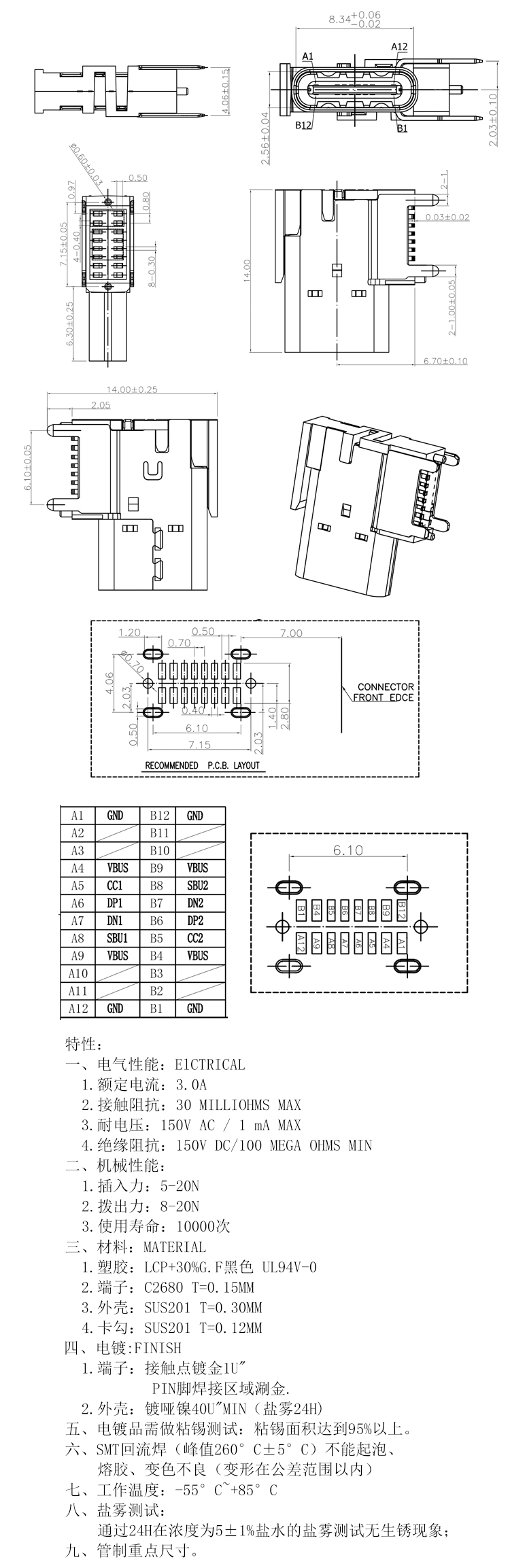 USB 3.1 Type C Upright Connector 16P Female CH=6.7mm Product Item:U06-CF1X5T-030 Gender: Female Pin number: 16Pin Color: Black Insulator: LCP USB 31 Type C Upright Connector 16P Female Inquiry Send Email Datasheet