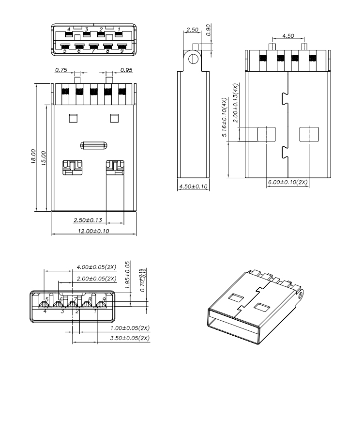 USB Charger Connector 9P USB 3.0 A Male Solder Connector Product Item:U03-1MXAXX-0011 Housing:PBT UL94V-O Contact:Copper Alloy Current Rating:1.8A Dielectric Withstanding Voltage:100 V R.M.S. USB Charger Connector 9P USB 30 A Male Plug Solder Connector Inquiry Send Email Datasheet