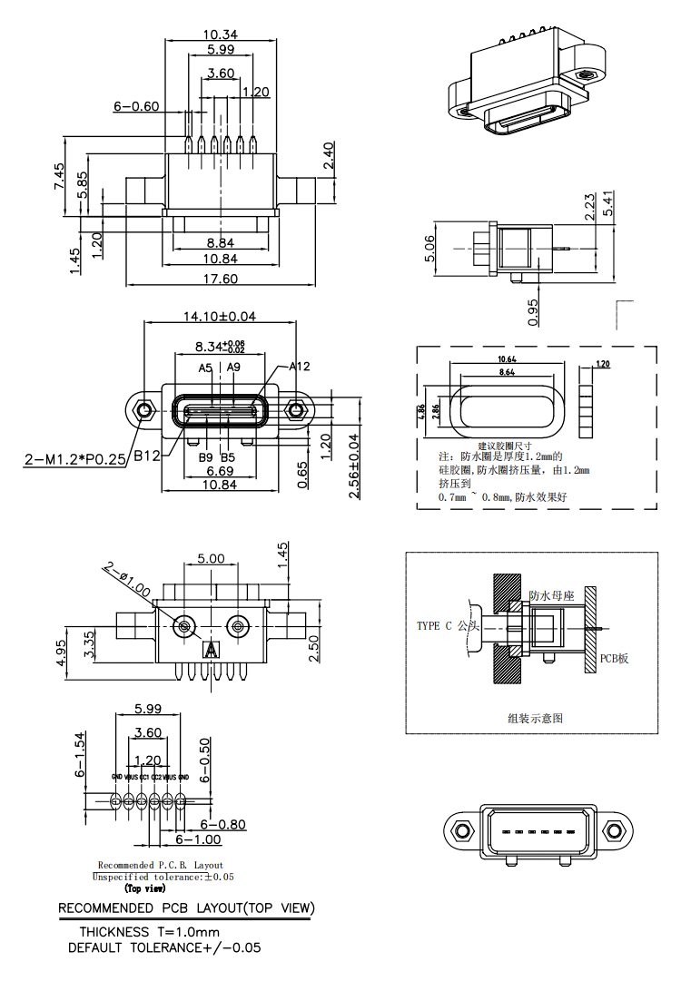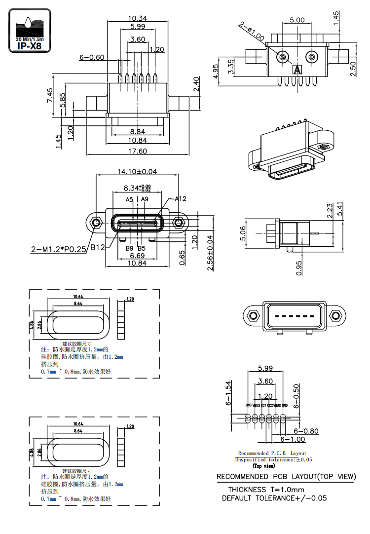 Vertical 6Pin USB C Connector IP68 Waterproof USB C Female Dip Type Connector with Screw Product Item:U06-CFXX5R-W108 Housing:PA9T(30%G.F) Contact: Phosphor Bronze Current Rating:3A Dielectric Withstanding Voltage:100 V R.M.S. 6Pin USB C Connector IP68 Waterproof USB C Female Dip Type Connector with Screw Inquiry Send Email Datasheet