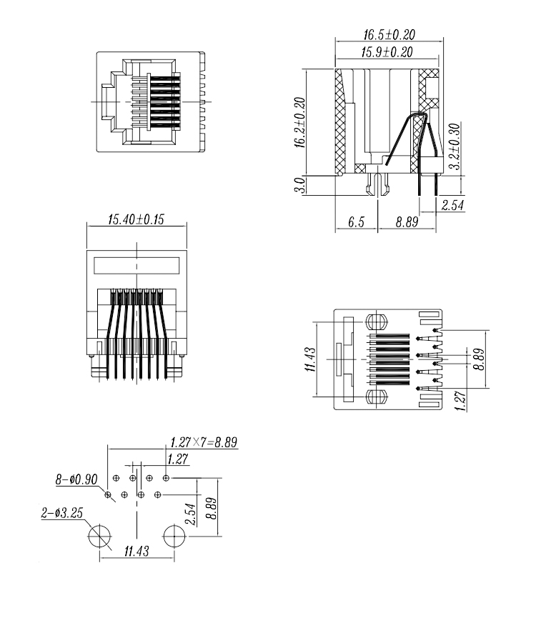 Vertical DIP Type Through Hole 8Pin RJ45 Female Connector Product Item:RJ01-X52X-050 Housing:PBT UL94V-0 Gender:Female Current Rating:1.5A Color:Black Vertical DIP Type Through Hole 8Pin RJ45 Female Connector Inquiry Send Email Datasheet