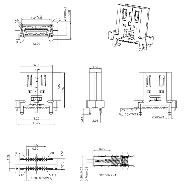 Vertical Dip Type USB 3.1 C Female Connector 24Pin for Charging Product Item:U06-CFXX5R-051 Insulator:LCP Gender:Female Pin:24Pin Color:Black Vertical Dip Type USB 31 C Female Connector 24Pin 180D for Charging Inquiry Send Email Datasheet