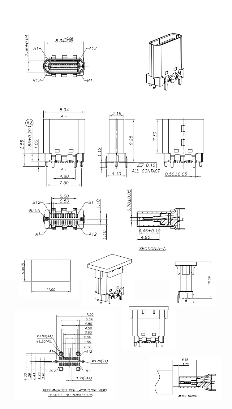 Vertical H9.30mm USB Type-C 24P Female Socket Connector for PCB Product Item:U06-CFXX5X-088-V2 Housing:LCP UL94V-0 Contact:Copper Alloy Current Rating:5A Dielectric Withstanding Voltage:100 V R.M.S. Vertical SMT USB Type-C 24P Female Socket Connector for PCB Inquiry Send Email Datasheet