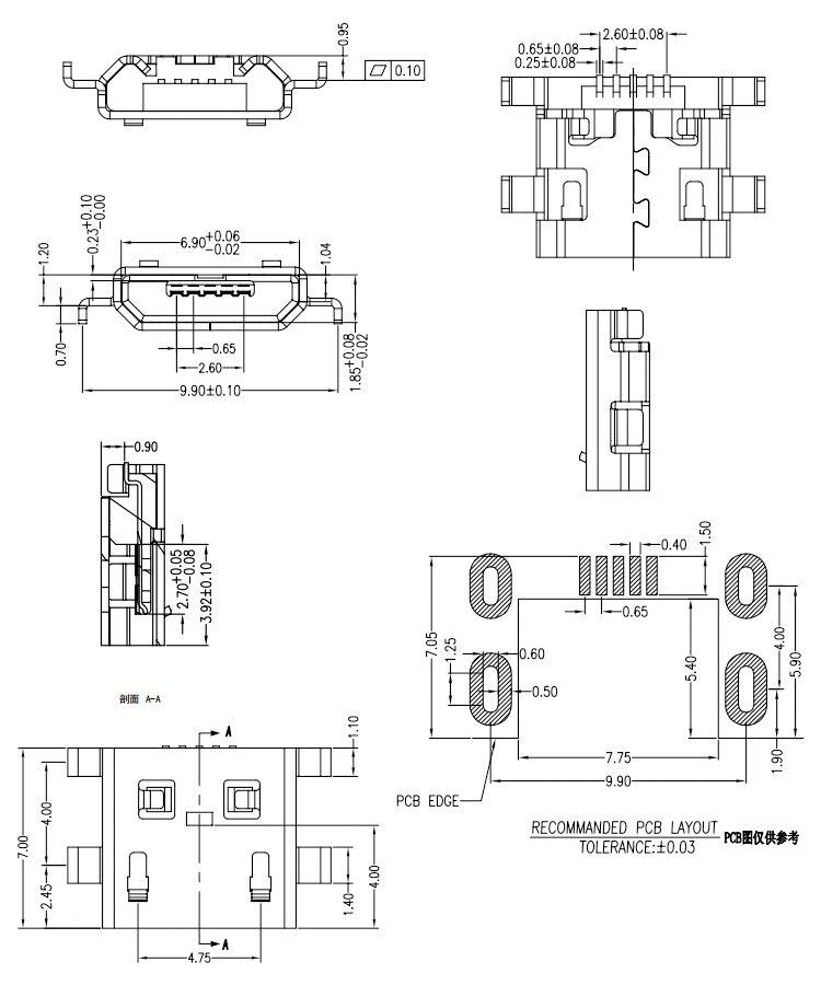 Vertical Mid Mount 0.9mm Micro USB 2.0 5Pin B Type Female Connector Product Item:U01-BFXX5R-522 Housing:High Temperature Thermoplastic with g.f,UL94V-O Contact:Copper Alloy Current Rating:1.8A Dielectric Withstanding Voltage:100 V R.M.S. Vertical Mid Mount 09mm Micro USB 20 5Pin B Type Female Charging Port Connector Inquiry Send Email Datasheet