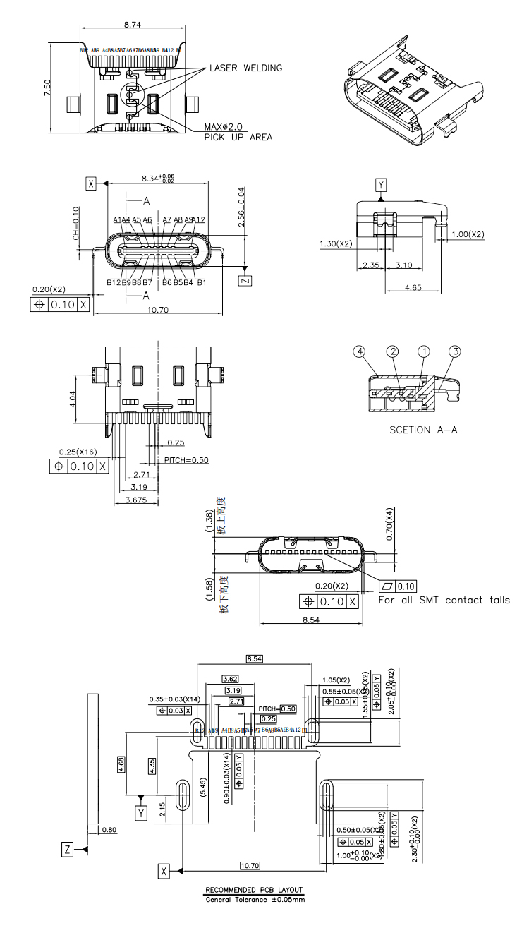 Vertical Mid Mount CH=0.10MM USB C Type 16Pin Female Receptacle Connector Product Item:U06-CFXX5X-066 Housing:Thermoplastic UL94V-0 Contact:Copper Alloy Current Rating:0.25A Dielectric Withstanding Voltage:100 V R.M.S. Vertical Mid Mount CH=010MM USB C Type Female 16Pin Connector Inquiry Send Email Datasheet
