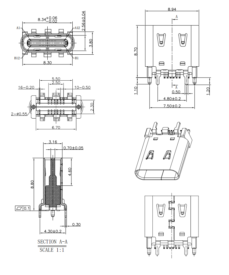Vertical SMT H=8.8MM 16Pin USB Type C Female Socket Connector Product Item:U06-CFXX5R-005 Housing:High Temp. Resistant Plastics,UL94V-0 Gender:Female Current Rating:5A Color:Black Vertical SMT 16Pin USB Type C Female Socket Connector Inquiry Send Email Datasheet