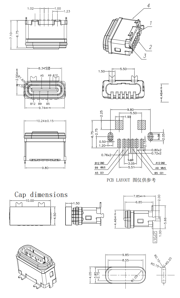 Vertical Smt Type H=6.8MM IPX7 Waterproof USB C 6P Female Connector Product Item:U06-CFXX5R-W012 Housing:LCP Contact:C5191 Current Rating:1.5A Dielectric Withstanding Voltage:100 V R.M.S. Vertical Smt Type IPX7 Waterproof USB C 6P Female Connector Inquiry Send Email Datasheet