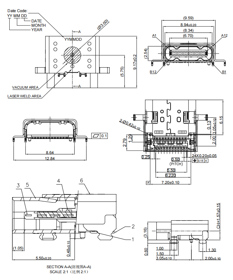 Vertical Top Mount Dual USB Type C 24P Female Connector for Mobile Phone Product Item:U06-40CFXX5R-002-V2 Housing:PA9T Contact:C18140 Current Rating:5A Dielectric Withstanding Voltage:100 V R.M.S. Vertical Top Mount 24Pin Dual USB Type C Female Connector for Mobile Phone Inquiry Send Email Datasheet