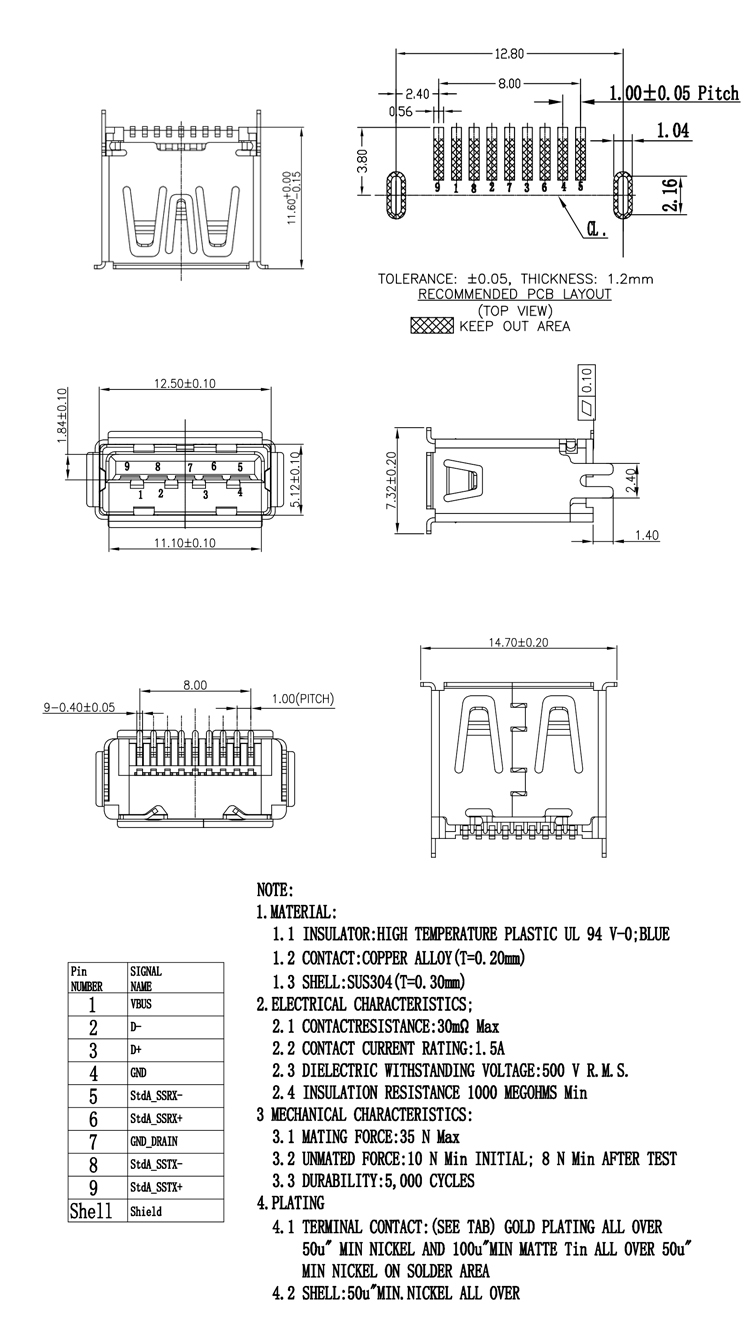 Vertical USB 3.0 Type A Female Connector with Flange 9P Product Item:U03-AFXAXX-1008-V2 Gender:Female Pin Number: 9Pin Color:Blue Insulator:LCP Vertical SMT Type USB 30 Type A Female Connector with Flange 9P Inquiry Send Email Datasheet