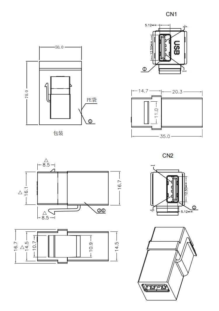 Vertical USB Adapter Keystone USB 2.0 A Female To USB 2.0 A Female Adapter Product Item:AD20AF20AF-004 Outer Molding:ABS,white&black Inner Mold:PCB Board T=1.6MM Connector1:USB 2.0 A Female Connector Connector2:USB 2.0 A Female Connector 180 Degree USB Adapter Keystone USB 20 A Female To USB 20 A Female Adapter Inquiry Send Email Datasheet