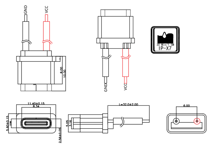 Waterproof 6P Type C USB Female Connector Product Item:U06-CFXX5X-WWS05 Gender:Female Pin Number: 6Pin Color:Black Insulator:LCP IPX7 Waterproof 6P Type C USB Female Connector Inquiry Send Email Datasheet