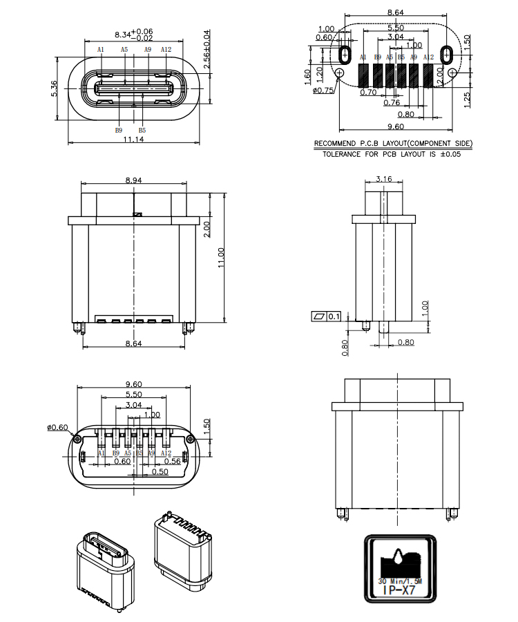 Waterproof IP-X7 6Pin SMT USB Connector Vertical H11.0MM USB C Female Connector Product Item:U06-CFXX5R-W126-V7 Housing:High Temperature Resistance Plastic Contact:Copper Steel Current Rating:3A Dielectric Withstanding Voltage:100 V R.M.S. Waterproof IP-X7 6Pin SMT USB Type C Female Connector H=110MM USB C Female Connector Inquiry Send Email Datasheet