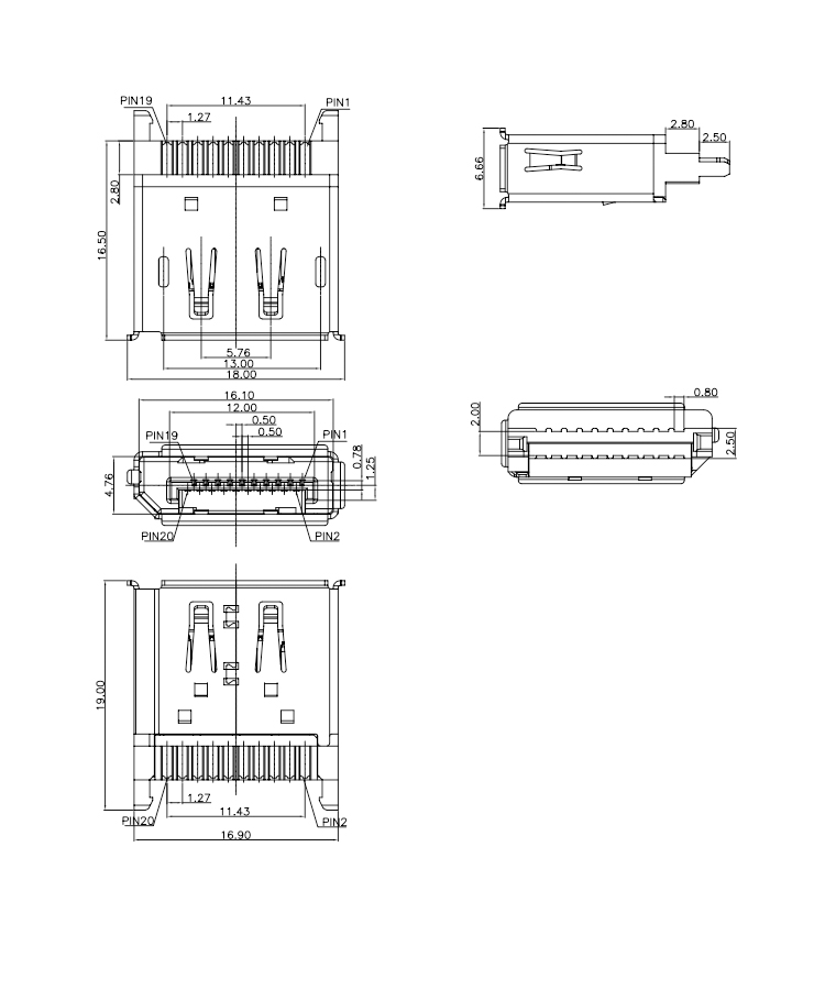 Wire Soldering Type Nickel Plated DisplayPort DP 20P Female Connector Product Item:DP09-FXX5B-004-A Housing:LCP UL94V-0 Contact:C2680 Current Rating:0.5A Dielectric Withstanding Voltage:500V AC/rms Nickel Plated DisplayPort DP 20P Female Connector For Wire Soldering Inquiry Send Email Datasheet